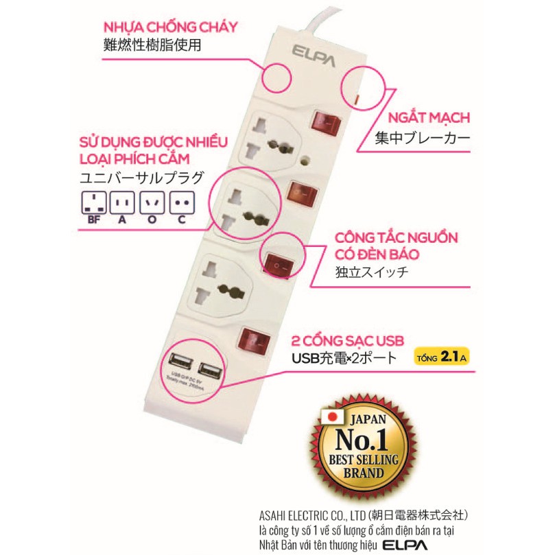 Thương hiệu: ELPA | Xem thêm các sản phẩm Ổ cắm điện của ELPAMô tả ngắn
