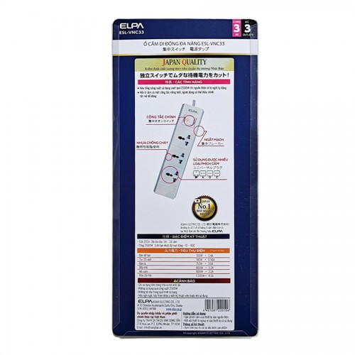 [Hỏa tốc HCM] Ổ Cắm An Toàn Điện ELPA ESU-VNC33 Số 1 Nhật Bản Chính Hãng