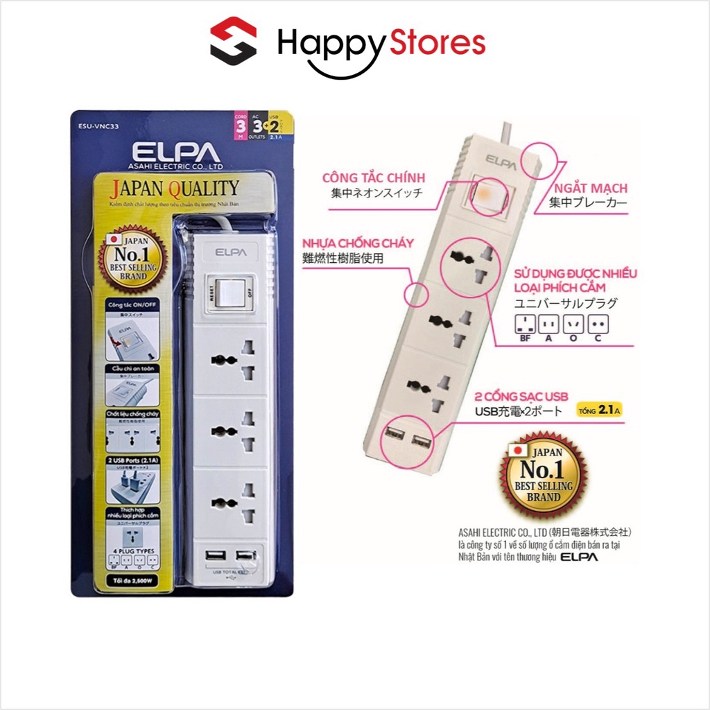 Giới thiệu [Hỏa tốc HCM] Ổ Cắm An Toàn Điện ELPA ESU-VNC33 Số 1 Nhật Bản Chính Hãng