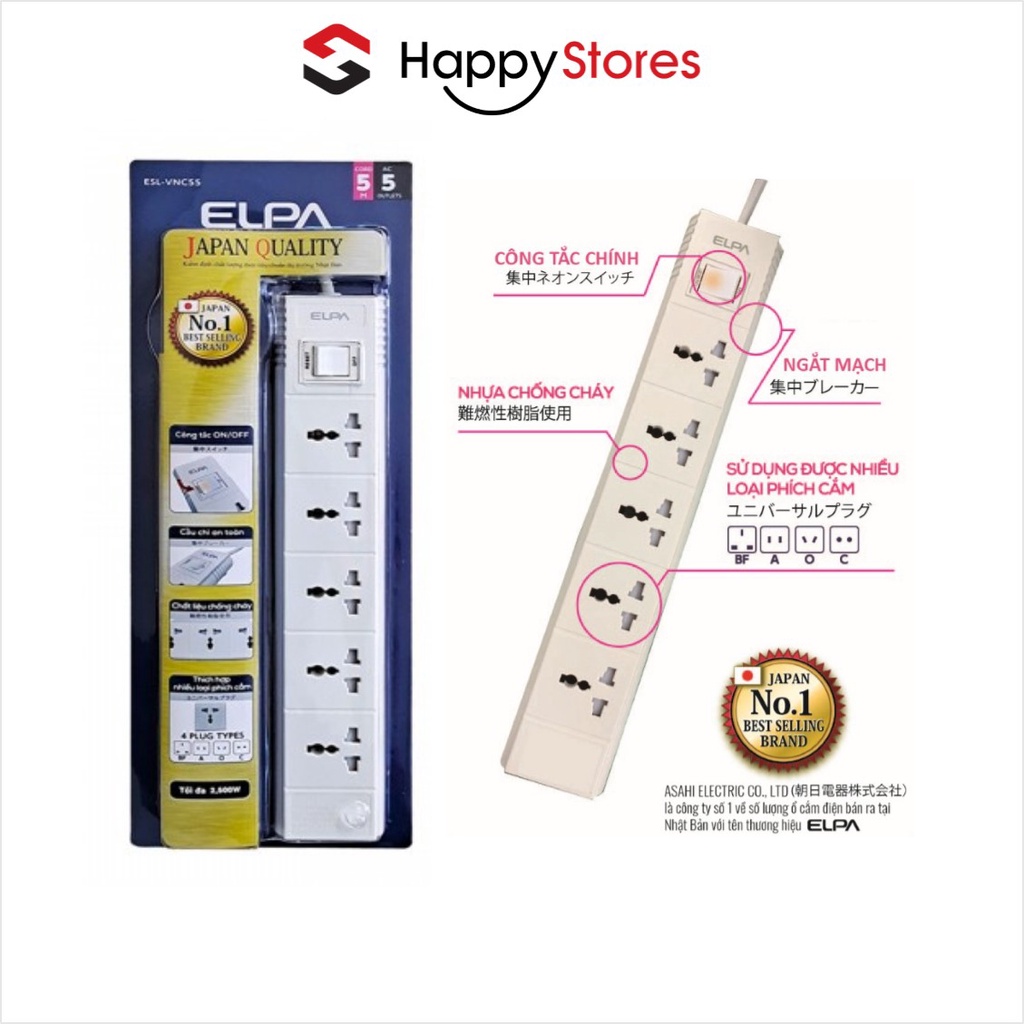 Ổ Cắm Điện Chống Cháy ELPA ESL-VNC55 Chuẩn Nhật Bảo Hành Chính Hãng