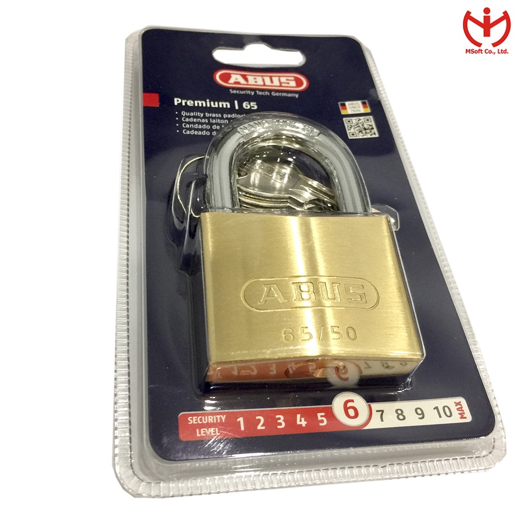 [Hỏa tốc HCM] Ổ khóa ABUS 65/50 thân đồng rộng 50mm 4 chìa răng cưa - MSOFT