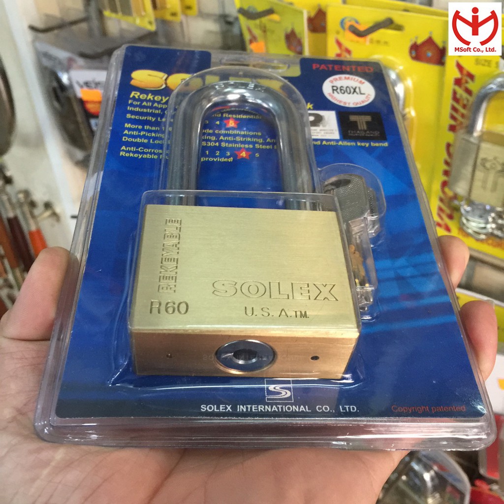 Giới thiệu [Hỏa tốc HCM] Ổ khóa Solex R60XL thân đồng 60mm càng dài 72mm - MSOFT