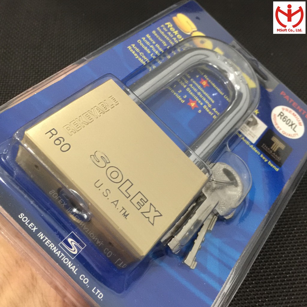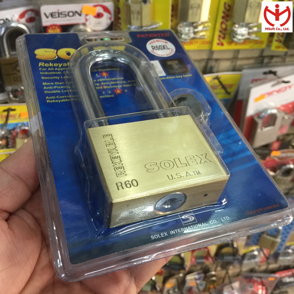 [Hỏa tốc HCM] Ổ khóa Solex R60XL thân đồng 60mm càng dài 72mm - MSOFT