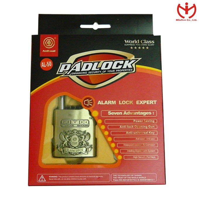 [Hỏa tốc HCM] Ổ khóa báo động Anboud AL-50 màu vàng đồng - MSOFT