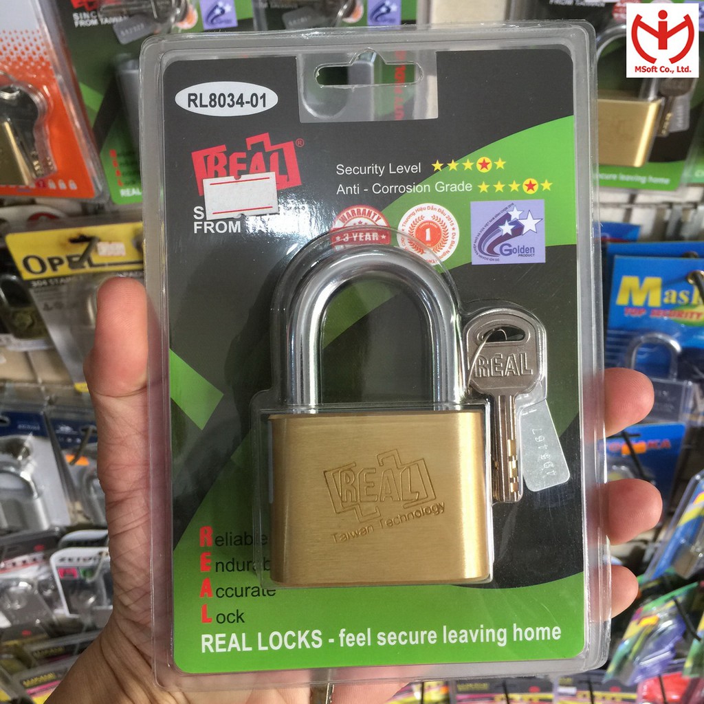 Nhà cửa & Đời sống > Bảo hộ gia đình > Khóa, ổ khóa || [Hỏa Tốc HCM] Ổ khóa Real RL8034-01 thân đồng rộng 60mm - MSOFTCòn hàng