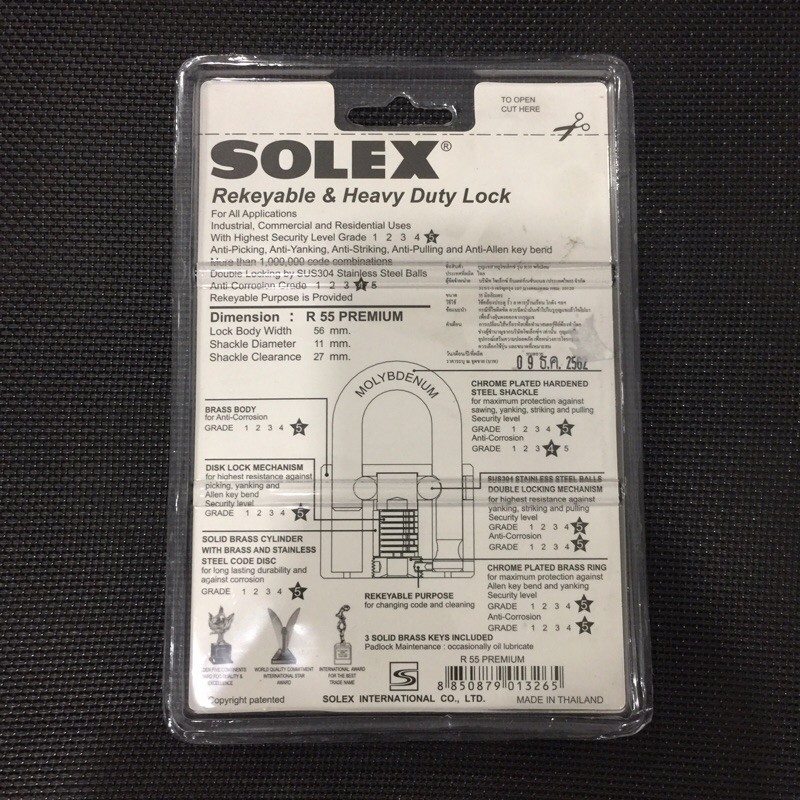 Giới thiệu [Hỏa tốc HCM] Ổ khóa Solex R55 thân đồng rộng 55mm Solex Thái Lan - MSOFT