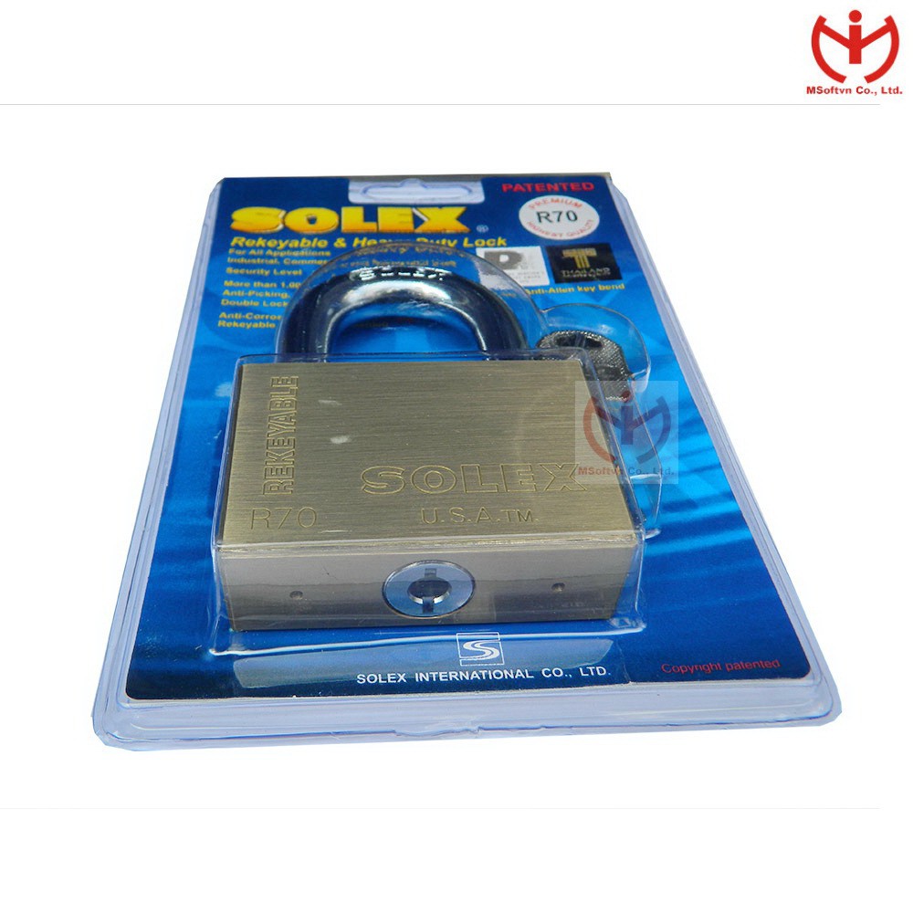 Giới thiệu [Hỏa tốc HCM] Ổ khóa Solex R70 thân đồng rộng 70mm chìa vuông - MSOFT