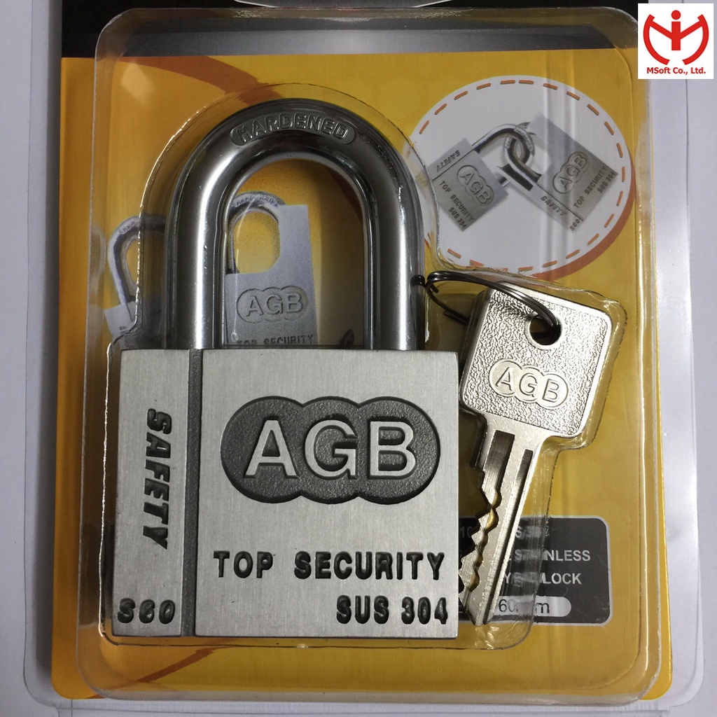 [Hỏa tốc HCM] Ổ khóa thép AGB S60 thân inox SUS 304 có 4 chìa răng cưa 2 tầng - MSOFT