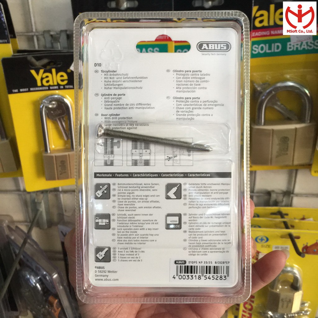 Nhà cửa & Đời sống > Bảo hộ gia đình > Khóa, ổ khóa || [Hỏa Tốc HCM] Ruột khóa ABUS D10PS dài 70mm tâm giữa 35/35 - MSOFTCòn hàng