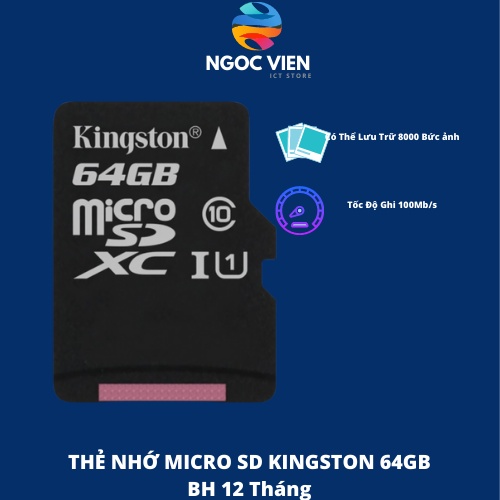 Giới thiệu [Hỏa Tốc - HCM] Thẻ Nhớ KingSton 64GB Class 10 100MB/s | Hàng Chính Hãng Kingston | Bảo Hành 1 Năm | Ngọc Viên Store