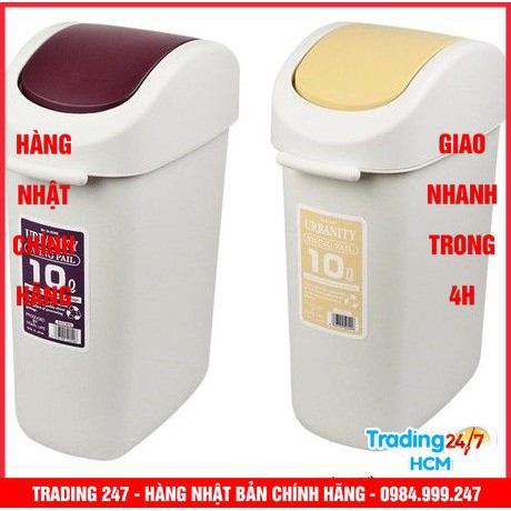 [Hỏa tốc HCM] Thùng đựng rác 10L nắp xoay màu nâu Nội địa Nhật Bản