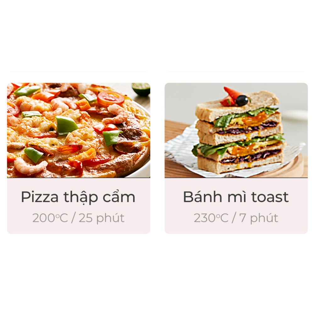 ✔️Nhiều chế độ nướng: nướng bánh mì, bánh bông lan, gà, pizza, bắp, cá, hotdog...