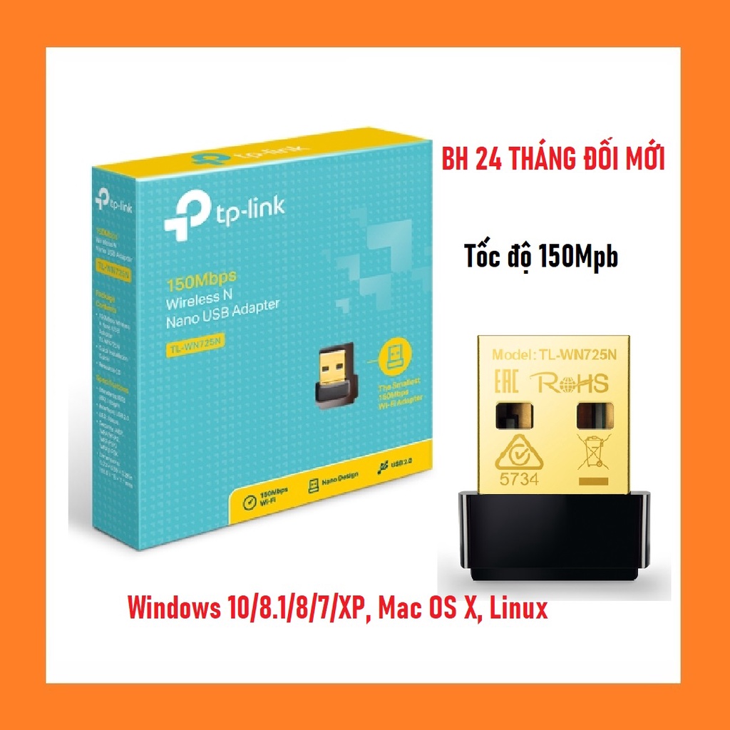 [Hỏa Tốc - HN] Bộ thu WiFi Siêu nhỏ gọn TL-WN725N N150Mbps USB, Hàng chính Hãng, BH 24 Tháng
