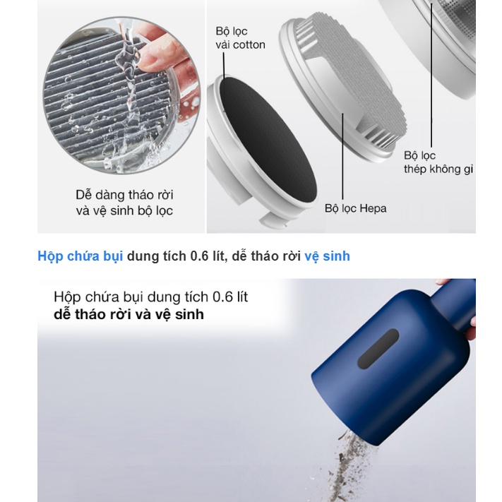 Tiện ích: Thiết kế 2 trong 1 (tháo rời sử dụng như máy hút bụi cầm tay)