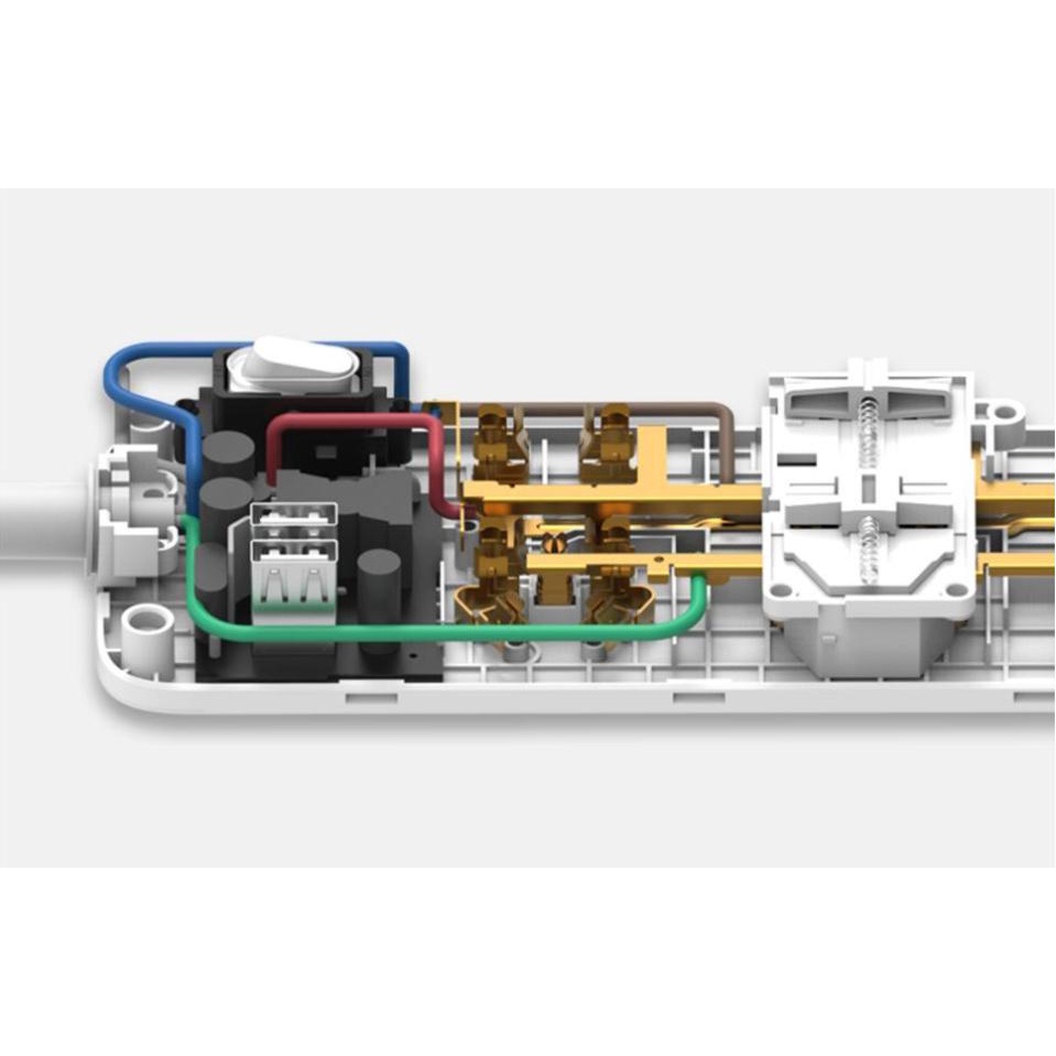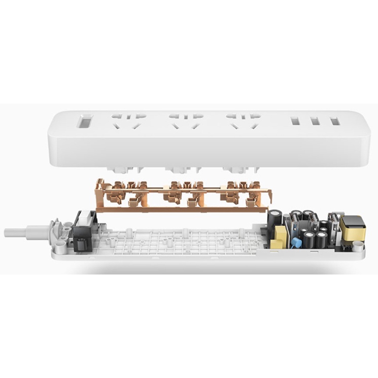 Bên dưới công tắc nhấn tắt/mở , Xiaomi Power Strip sử dụng mạch bảo vệ an toàn , có khả năng tự động ngắt nếu xảy ra hiện tượng quá tải hoặc hiện tượng bất thường