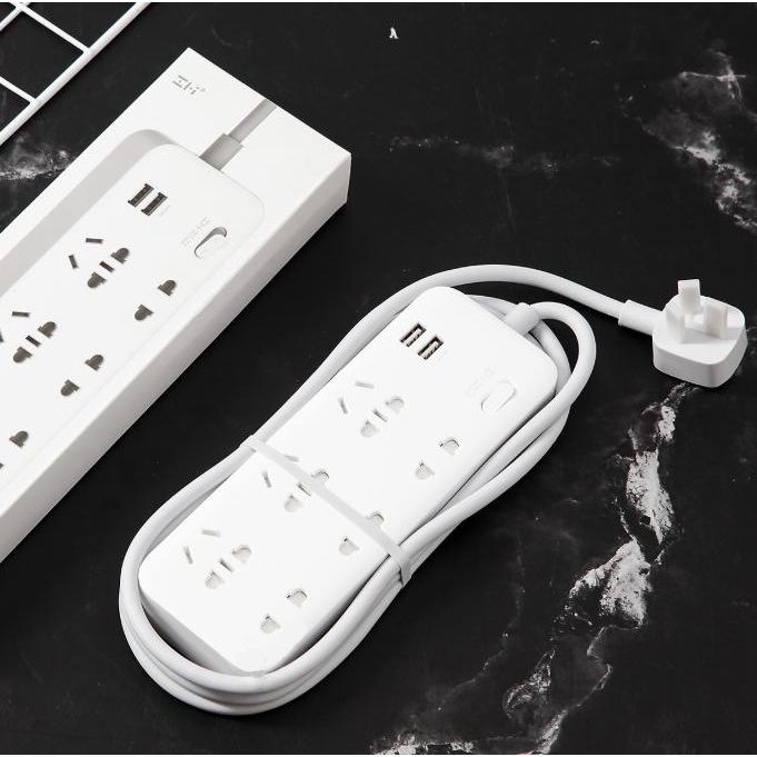 Mi power strip được thiết kế với 3 jack cắm điện, cắm được các phích cắm từ 2 chấu đến 3 chấu, tròn hay dẹp đều có thể cắm được. Ngoài ra còn được tích hợp 3 khe cắm USB.