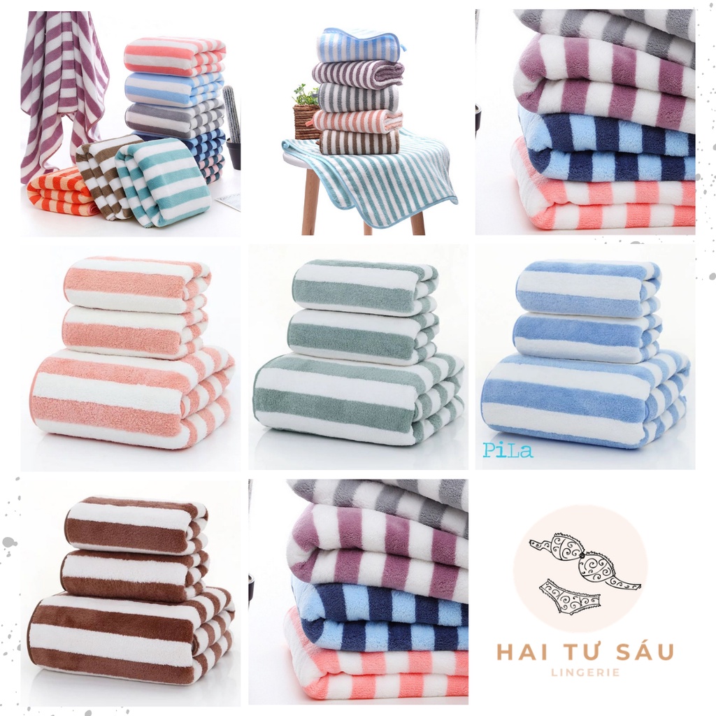 Giới thiệu [Hoả tốc TP.HCM] Khăn Tắm Lông Cừu Xuất Hàn Mềm Mại, Vải Dày 70 x 140 cm - Sọc