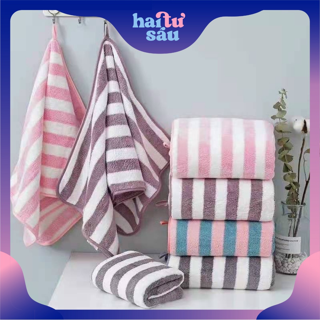[Hoả tốc TP.HCM] Khăn Tắm Lông Cừu Xuất Hàn Mềm Mại, Vải Dày 70 x 140 cm - Sọc