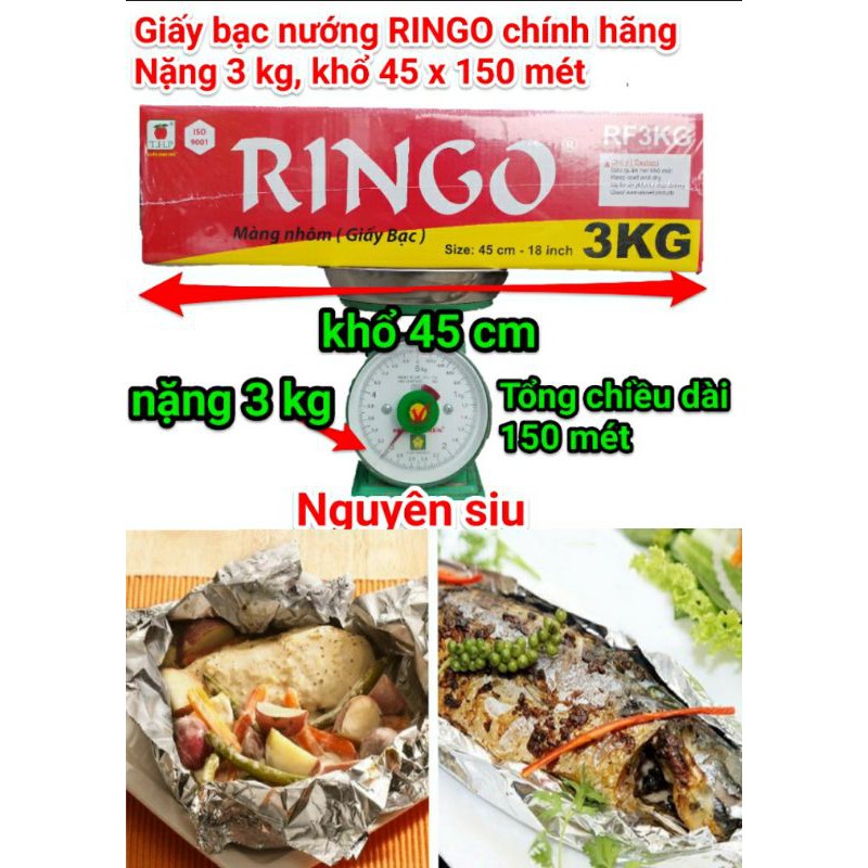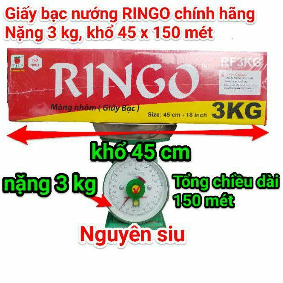 ( Hỏa tốc TpHCM) Giấy bạc nướng thực phẩm RINGO 3 KG RF3KG khổ 45cm tổng dài 150 mét màng nhôm nướng thực phẩm ringo 3kg