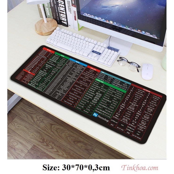 ( Hỏa tốc TpHCM)( Tiếng Việt) lót chuột bàn phím máy tính in phím tắt văn phòng nhiều mẫu Size 30x80x0.3cm.