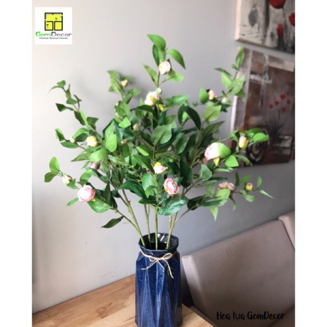 Giới thiệu Hoa trà hoa hải đường lụa đẹp hoa giả trang trí siêu cao cấp