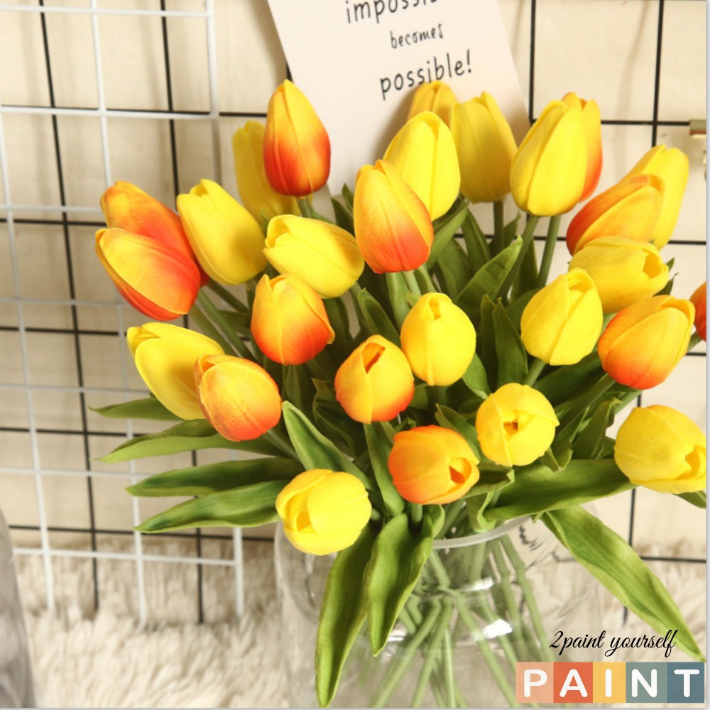 Hoa giả tulip decor trang trí bình thủy tinh, lọ hoa để bàn 2PAINT