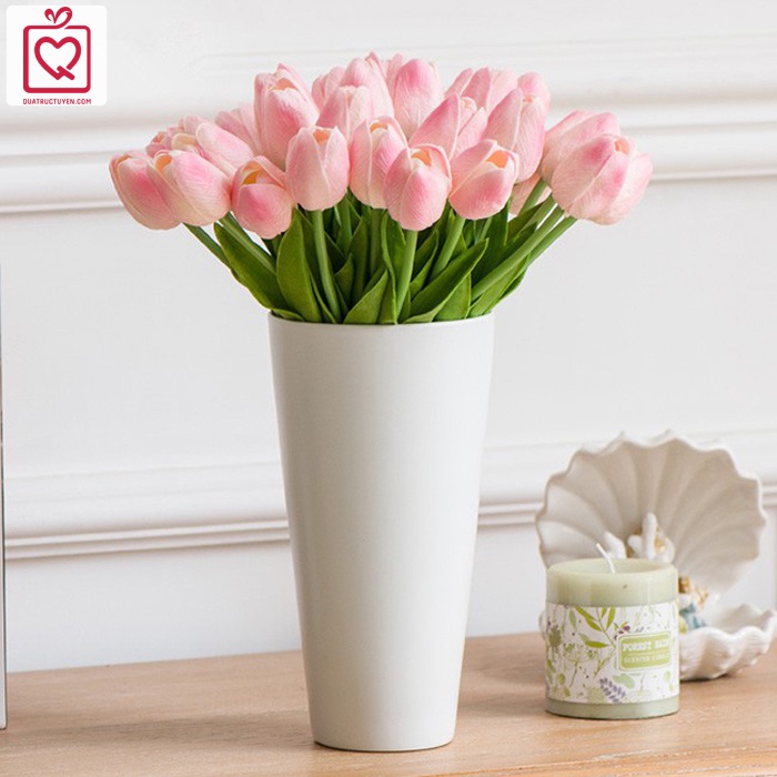 Bên cạnh việc cắm hoa thật, thì những bình hoa giả cũng là một lựa chọn khá hoàn hảo cho ngôi nhà của bạn. Hoa giả có nhiều ưu điểm và đẹp chẳng thua kém gì hoa thật, hơn nữa, màu sắc và kiểu dáng lại vô cùng phong phú, đa dạng. Không phải lo đến việc hoa sẽ tàn, héo hay biến màu, chỉ cần đặt một lọ hoa tulip trong phòng khách là không gian sống của bạn dường như trở nên bừng sáng và tươi tắn hơn rất nhiều.Bạn có thể đặt hàng trực tiếp qua shopee hoặc đến trực tiếp cửa hàng của quatructuyen.com (trước khi qua vui lòng chat hoặc gọi số 0974183180 để được ưu đãi)