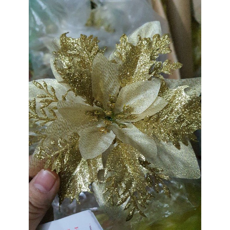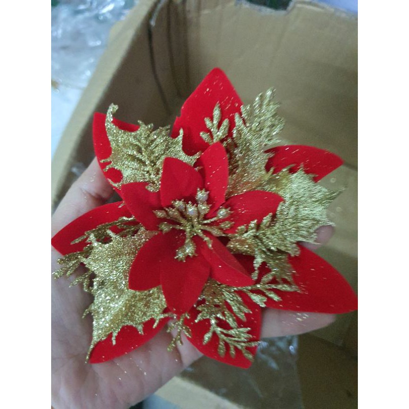 Hoa vải trang trí oản tài lộc, trang trí giỏ quà, trang trí noelMàu vải đỏ nhũ vàng