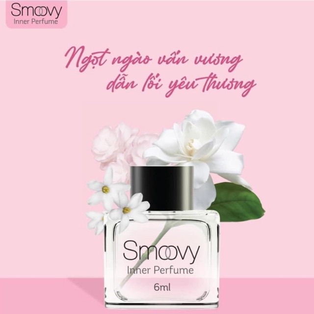 Nước hoa vùng kín Smoovy Inner Perfume cao cấp làm thơm cô bé và khử mùi hôi khó chịu dung tích 6mlSmoovy Inner Perfume mang đến cho phái đẹp mùi hương thơm dịu, quyến rũ từ sự kết hợp của hạnh nhaanh, ca cao, dành dành, hoa nhài, dạ lai hương cùng đậu tonke. Tất cả đều được hòa quyện lại tạo thành mùi hương ngọt ngào, quyến rũ, hấp dẫn và đầy mê hoặc