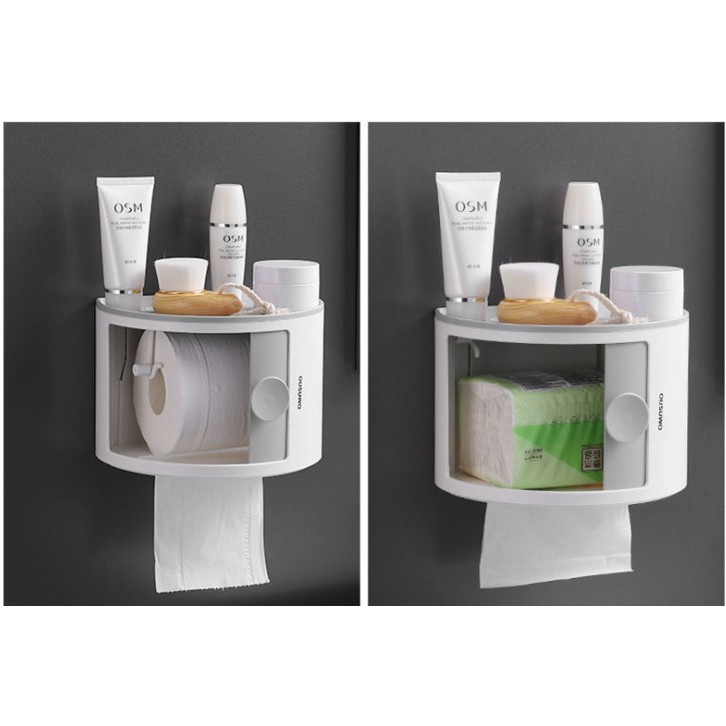(Hoàn $) Hộp để mỹ phẩm, để giấy vệ sinh đa năng dán tường (STIHN)
