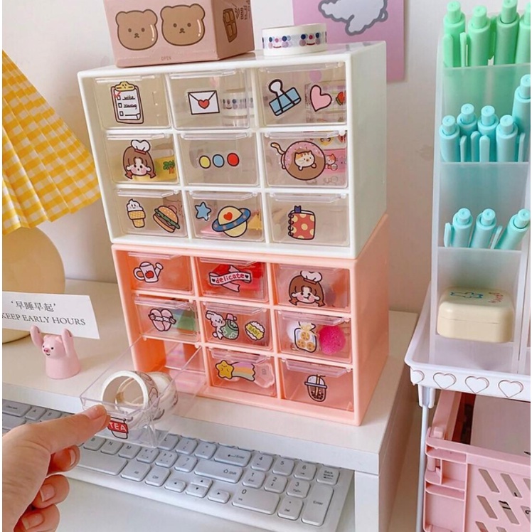 Gồm 9 ngăn chữ nhật nhỏ dạng ngăn kéo dễ dàng sử dụng và tháo lắp, giúp bảo quản đồ đạc cho không gian thêm thông thoáng, ngăn nắp.Sản phẩm thích hợp đặt tại gia đình hay làm tủ đựng trong văn phòng vô cùng tiện lợi.
