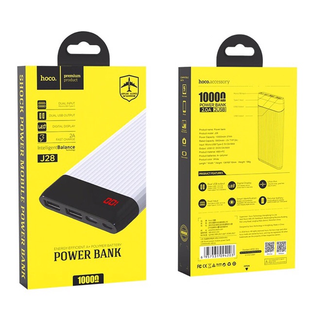 Giới thiệu Hoco J28-[10.000mAh]Pin sạc dự phòng 2 cổng USB sạc nhanh 2 thiết bị cùng lúc