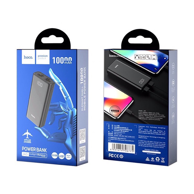 Giới thiệu Hoco J45-[10.000mAh]Pin sạc dự phòng 2 cổng USB tích hợp màn hình LED chìm báo dung lượng
