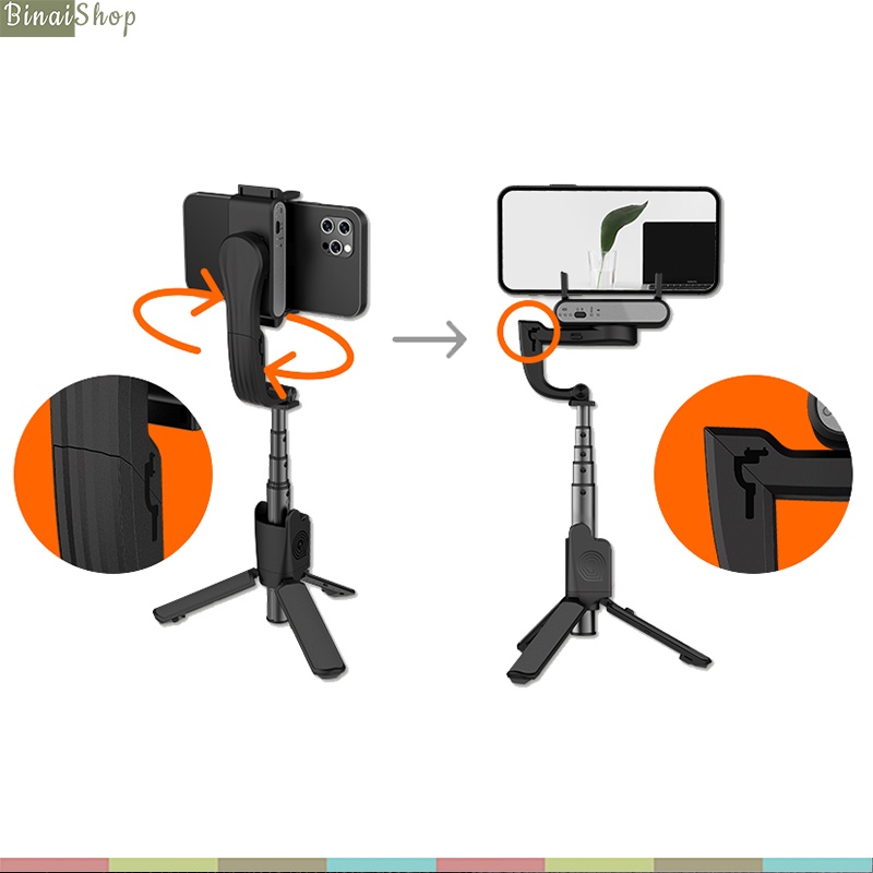Chế độ gậy tự sướng khóa động cơ để cố định kẹp điện thoại và nó sẽ chuyển sang chế độ nguồn điện thấp.