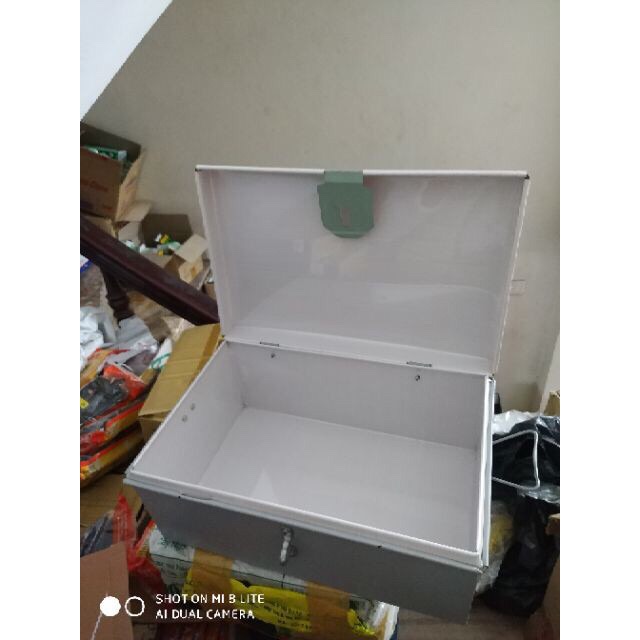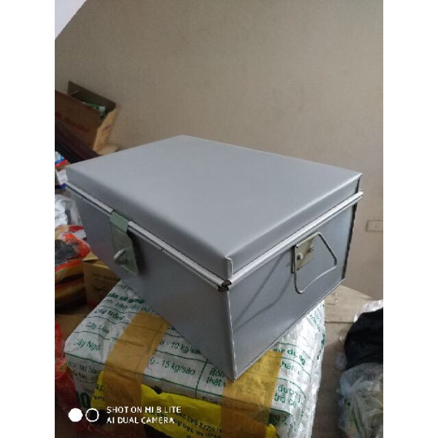 hòm dày đẹp chắc chắn, không rỉ có tai khóa và có 2 tay cầm 2 bên