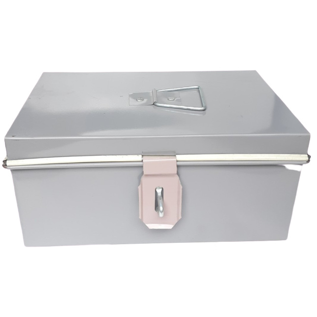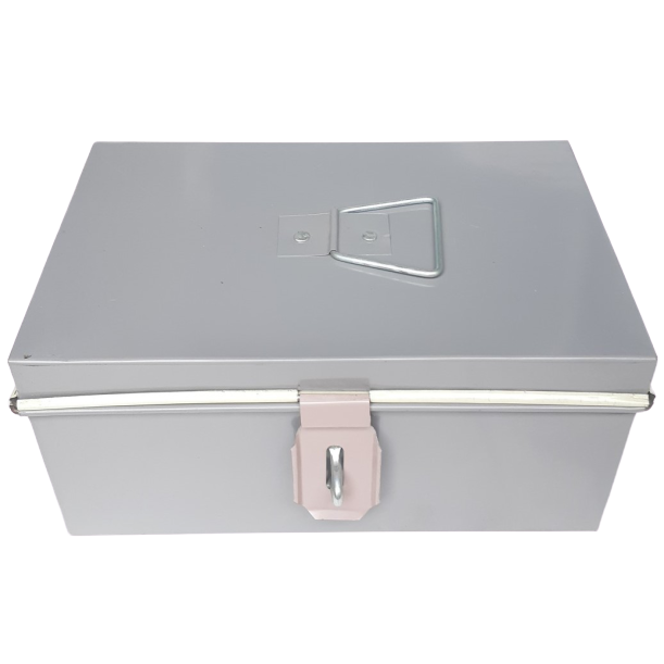 Hòm tôn to hơn một chút kích thước 27x20x13cm phù hợp cho các bác đựng đồ nhỏ xinh, hoặc đựng tiền....hòm có tai để khoá, có tay nắm để cầm.
