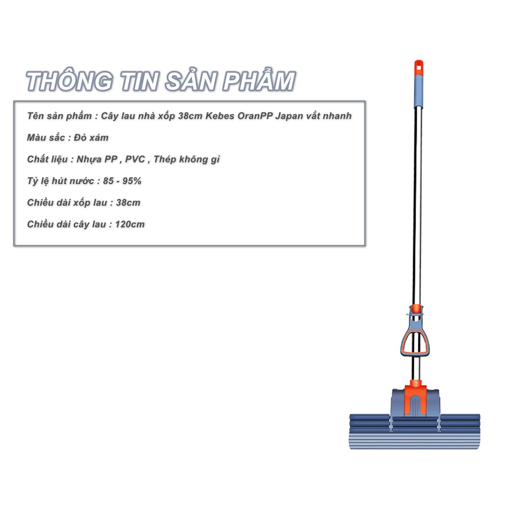 Cây lau nhà xốp 38cm Kebes OranPP Japan vắt nhanhTHÔNG TIN SẢN PHẨM :