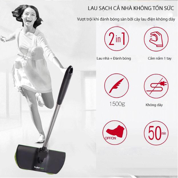 Cây Lau Nhà Tự Động Rotating MopBạn đã quá chán nản với công việc lau dọn nhà hàng ngày? Nhắc đến lau nhà là nhắc đến những chiếc chổi lau kèm theo xô nước đầy cồng kềnh? Không những vậy, bạn luôn phải lau ít nhất 2 lần mới sạch hoàn toàn, sau lần lau đầu đã phải lóc cóc đi giặt chổi rồi mới lau lần tiếp theo,… thật sự tốn sức tốn công và mất thời gian.Với Cây Lau Nhà Tự Động Rotating Mop – Cây lau nhà chạy bằng điện không dây sẽ biến công việc vốn tốn công sức này trở nên nhẹ nhàng và thoải mái.