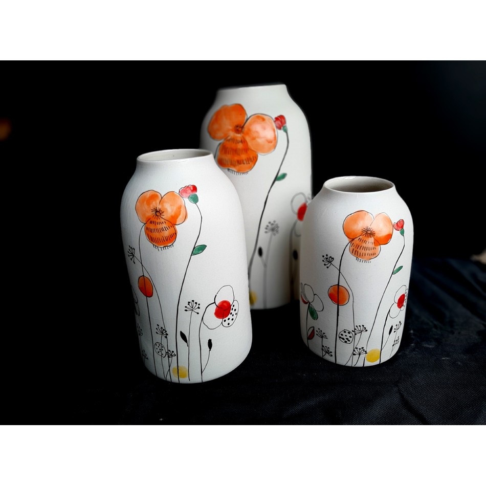 Nhà cửa & Đời sống > Trang trí nhà cửa > Bình trang trí || HOME DECOR - BỘ BÌNH GỐM TRỤ VẼ HOA CHO TRANG TRÍ NHÀ CỬA SẢN XUẤT TẠI XƯỞNG AUTHENTIC BAT TRANGCòn hàng
