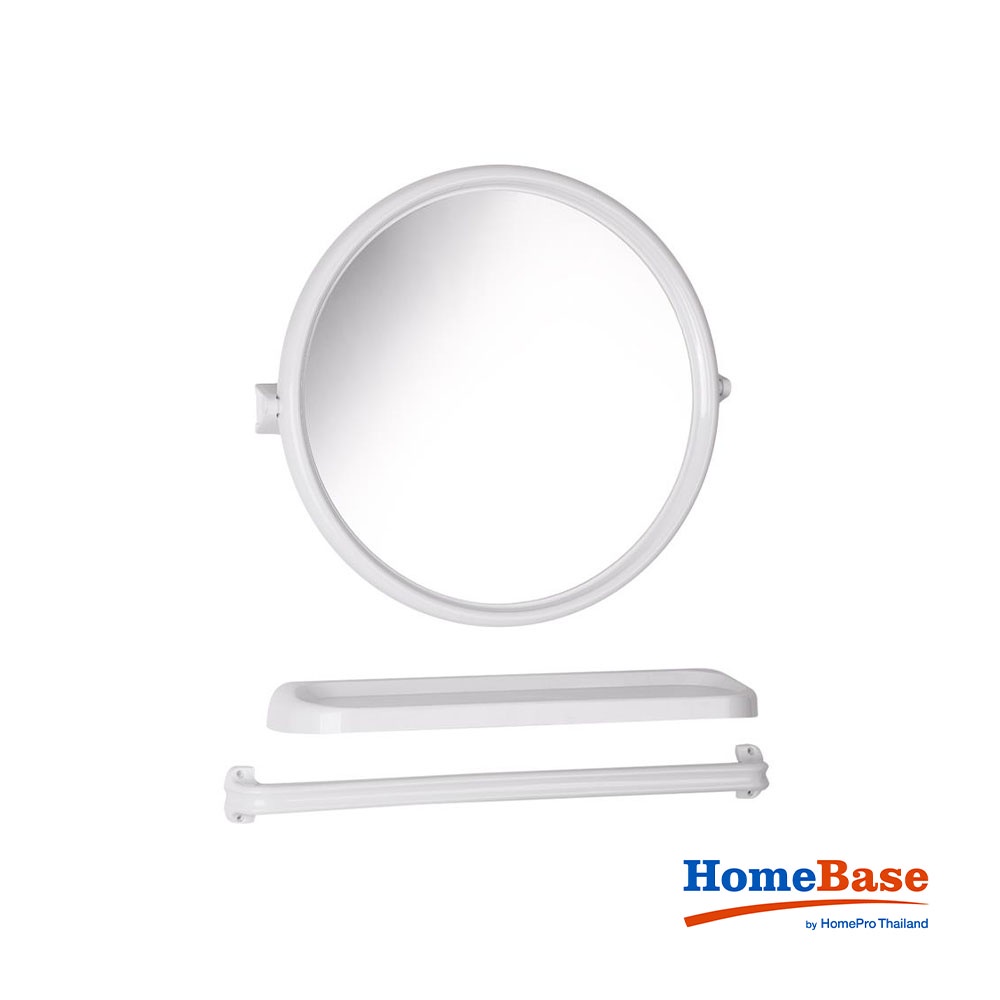 HomeBase BATHTIME Bộ kệ treo tường phòng tắm có gương tròn nhựa Thái Lan 52Wx3Dx45Hcm màu trắng
