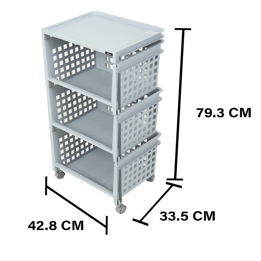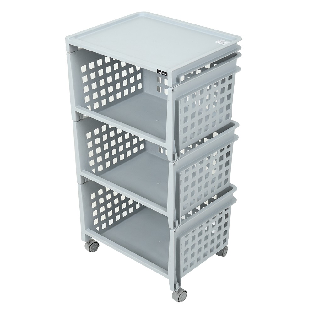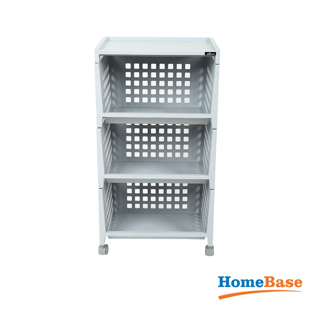 HomeBase DKW Kệ nhựa 3 tầng có bánh xe Thái Lan W42.8xD33.5xH79.3cm xám