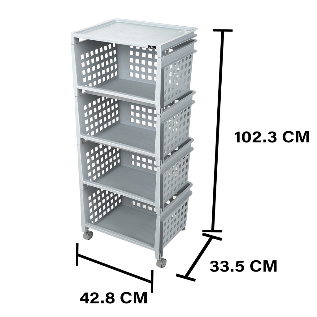 Giới thiệu HomeBase DKW Kệ nhựa 4 tầng có bánh xe Thái Lan W42.8xD33.5xH102.3 Cm xám