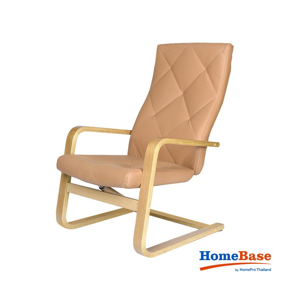 HomeBase FURDINI Ghế ngồi thư giãn bằng da PU khung thép cao cấp có tay vịn W63.5xH98xD84cm màu nâu