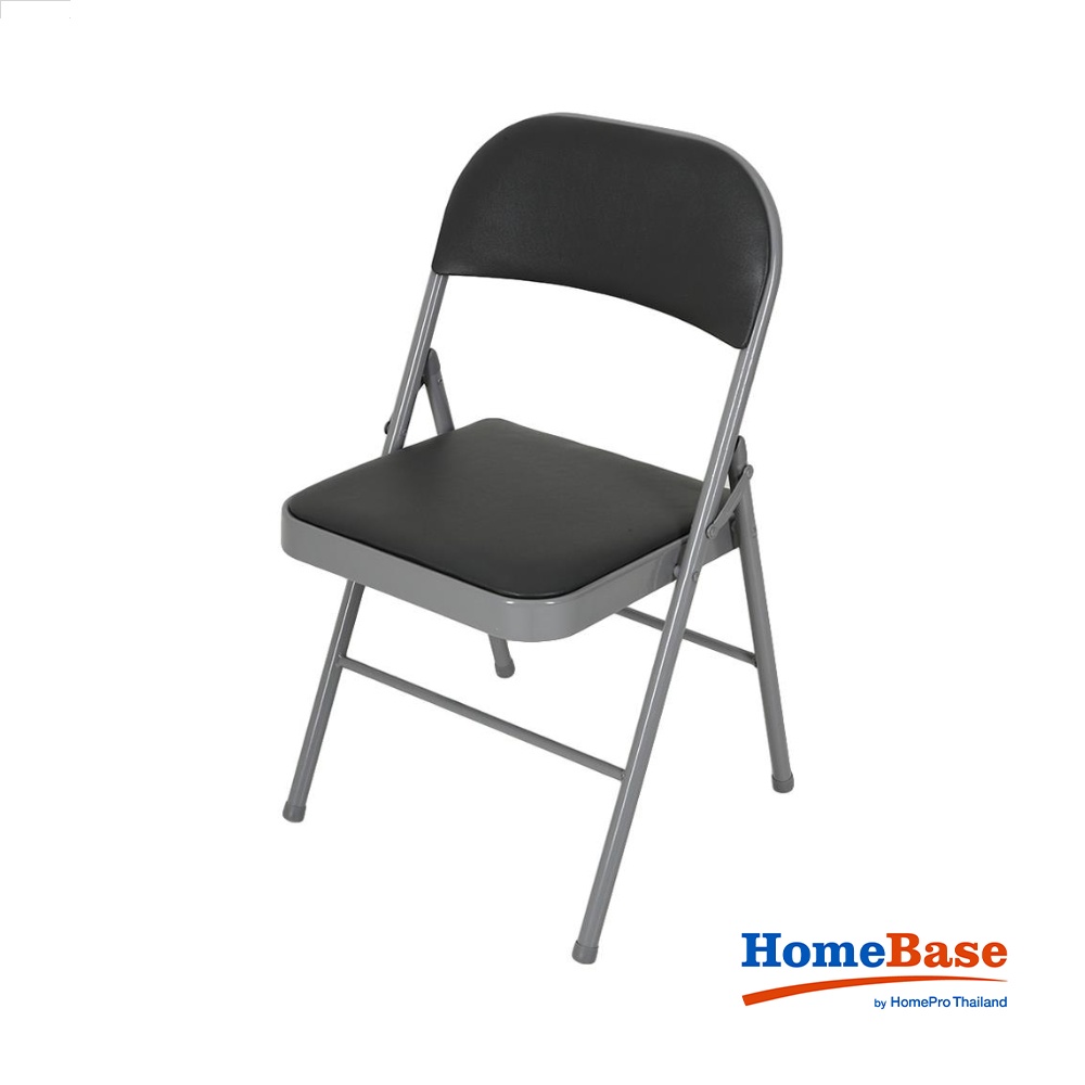 Nhà cửa & Đời sống > Nội thất > Ghế, ghế dài, ghế đẩu || HomeBase FURDINI Ghế xếp văn phòng khung thép có đệm ngồi và tựa lưng bằng thép bọc da PU W47xH78xD45cm màu xámCòn hàng