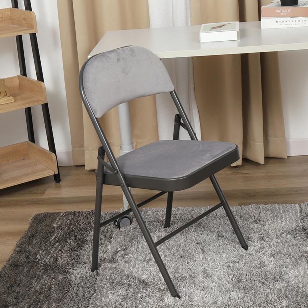 Nhà cửa & Đời sống > Nội thất > Ghế, ghế dài, ghế đẩu || HomeBase FURDINI Ghế xếp văn phòng bằng thép có mặt ngồi bọc nhung VELVET W46,5xH78xD45,5 màu xámCòn hàng