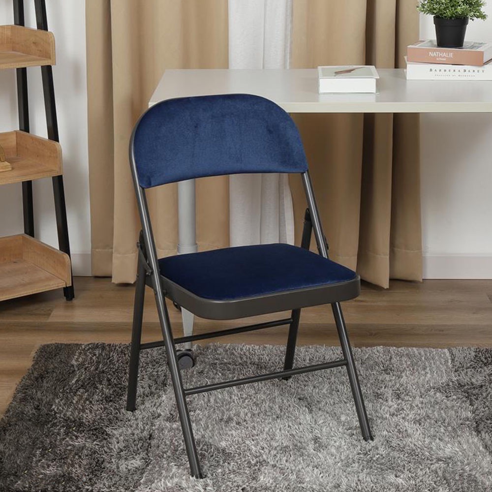 Nhà cửa & Đời sống > Nội thất > Ghế, ghế dài, ghế đẩu || HomeBase FURDINI Ghế xếp văn phòng bằng thép có mặt ngồi bọc nhung VELVET W46,5xH78xD45,5 màu xanh dương đenCòn hàng