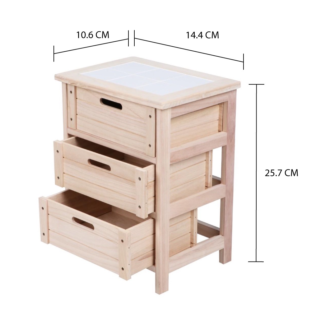 Tủ 3 ngăn kéo của FURDINI có thiết kế đẹp mắt, được làm bằng gỗ nguyên khối bền bỉ mang lại nét tự nhiên. Và phần trên rộng rãi đủ để trưng bày các món đồ của bạn. Tủ có kích thước nhỏ gọn, thiết kế nhẹ và di động. Đây là một trong những trợ thủ đắc lực nhất để giữ cho nơi ở của bạn luôn gọn gàng- 3 ngăn kéo cho phép bạn sắp xếp đồ đạc một cách dễ dàng.