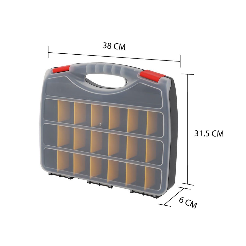 - Các ngăn bên trong hộp có thể chứa nhiều dụng cụ một cách ngăn nắp để dễ dàng tìm kiếm.