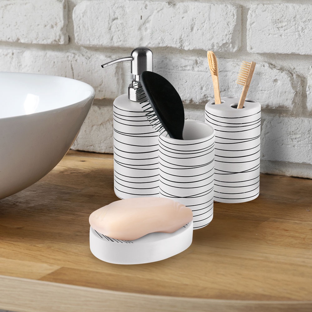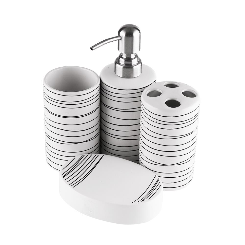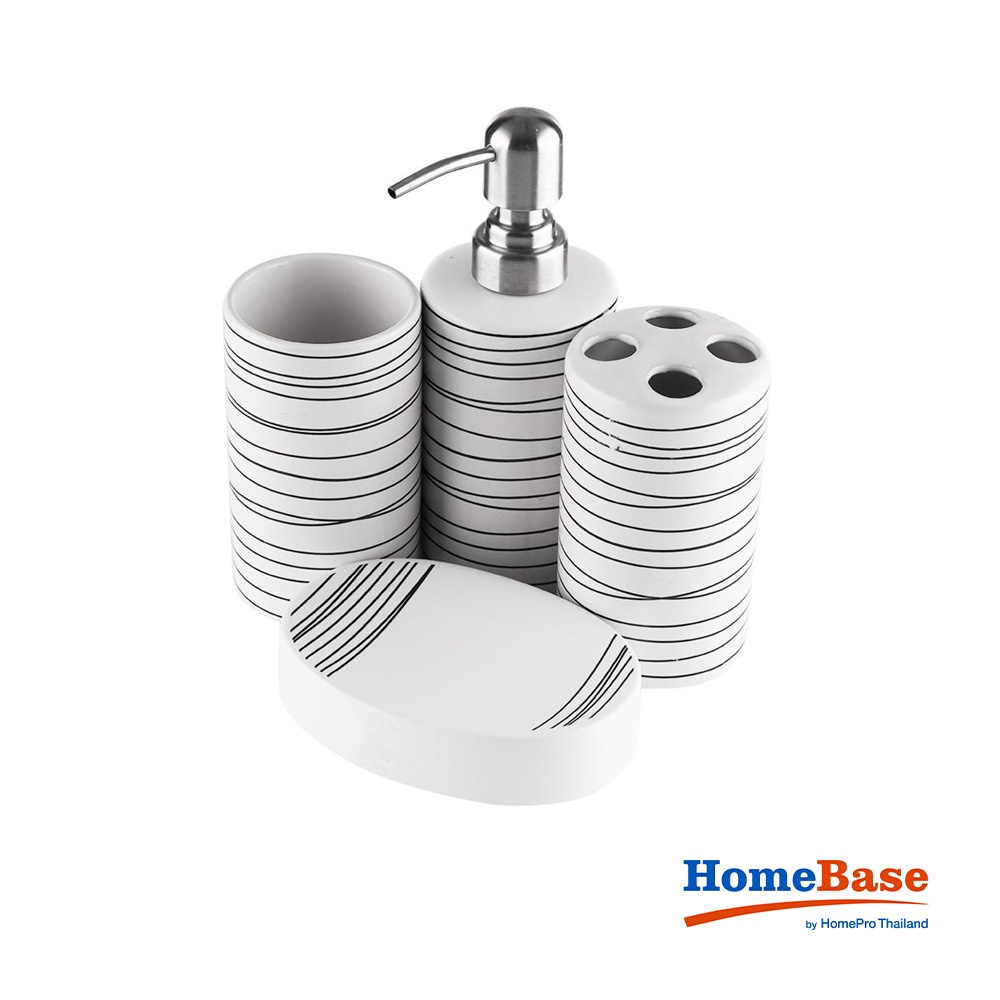 HomeBase MOYA Bộ đồ dùng nhà tắm 4 món bằng gốm B30231 W23,5xH24xD7,5 màu trắng