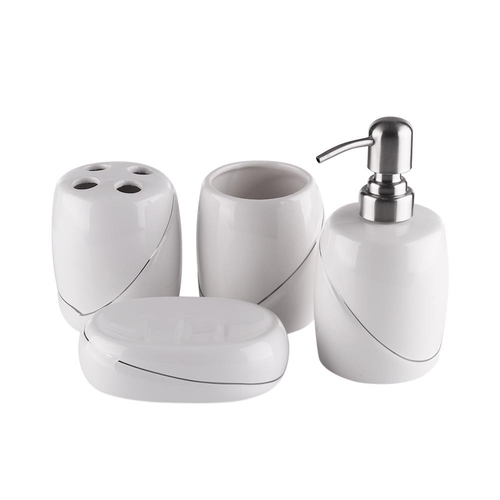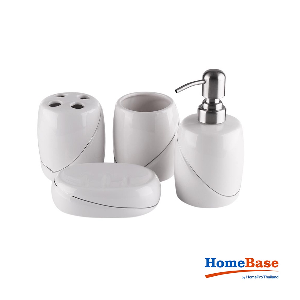 HomeBase MOYA Bộ đồ dùng nhà tắm 4 món bằng gốm B80290 W23xH18xD7 màu trắng